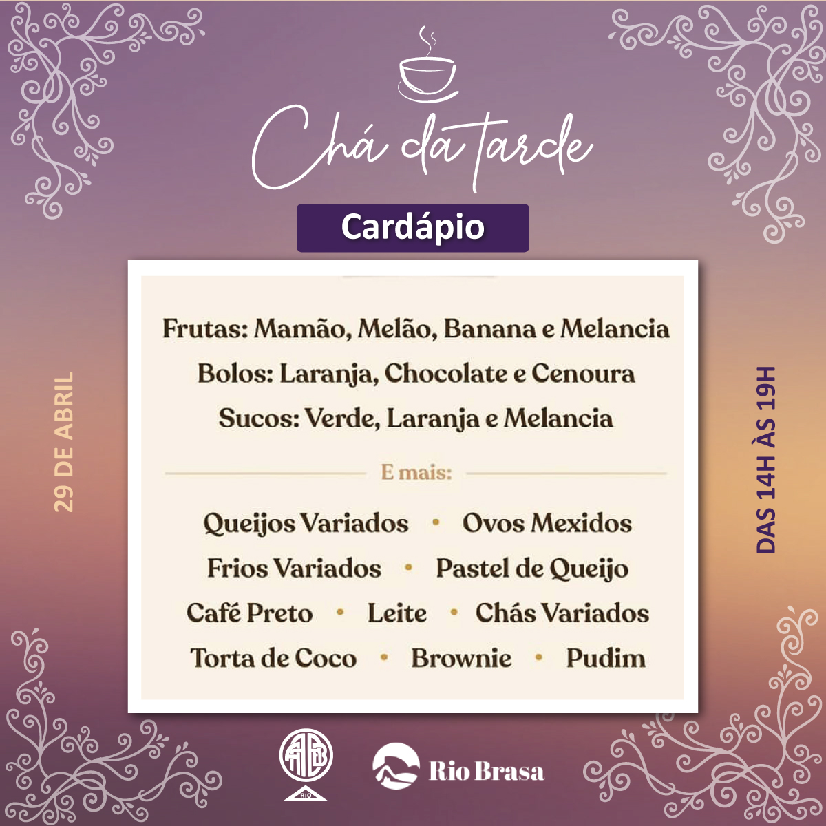 Cardápio Chá da Tarde - Clique e faça o download